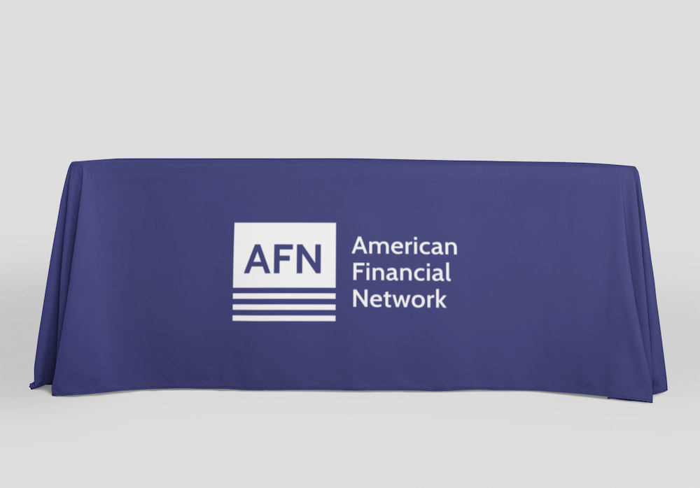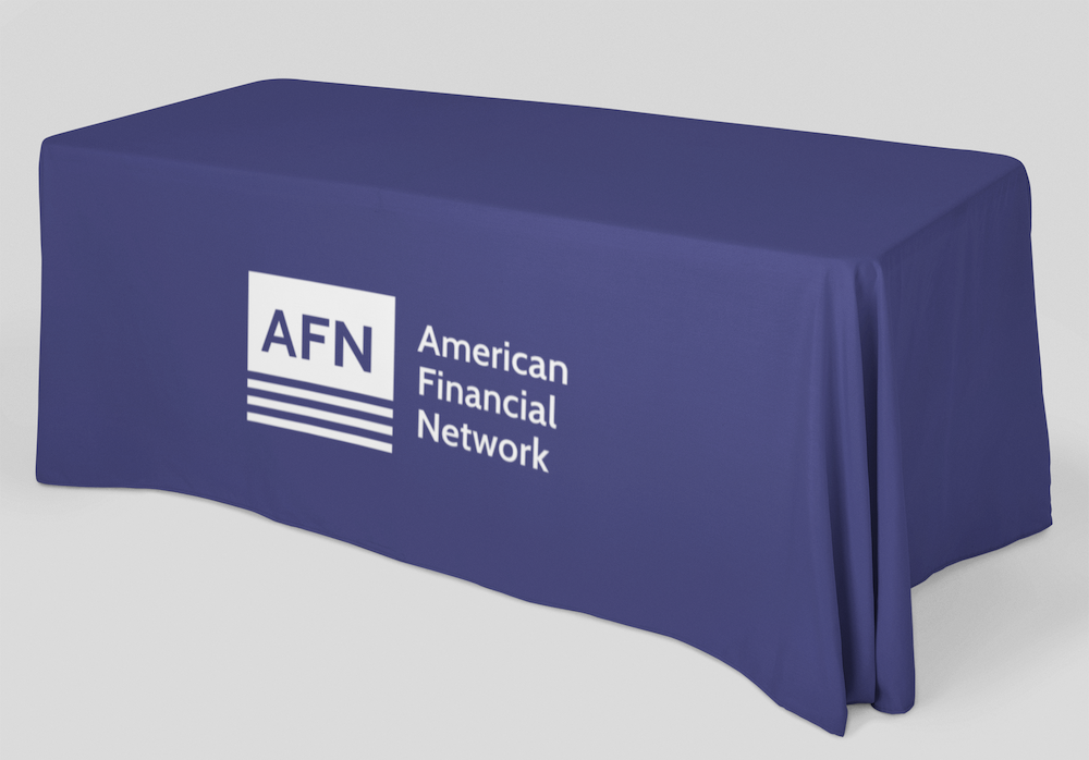 The AFN new logo table cover is perfect for trade shows, meetings, and presentations. Made from 8.8 oz. polyester table fabric that drapes over 3 sides of a display table. The cover is sewn with rounded corners and hang approximately 2″ above the floor.